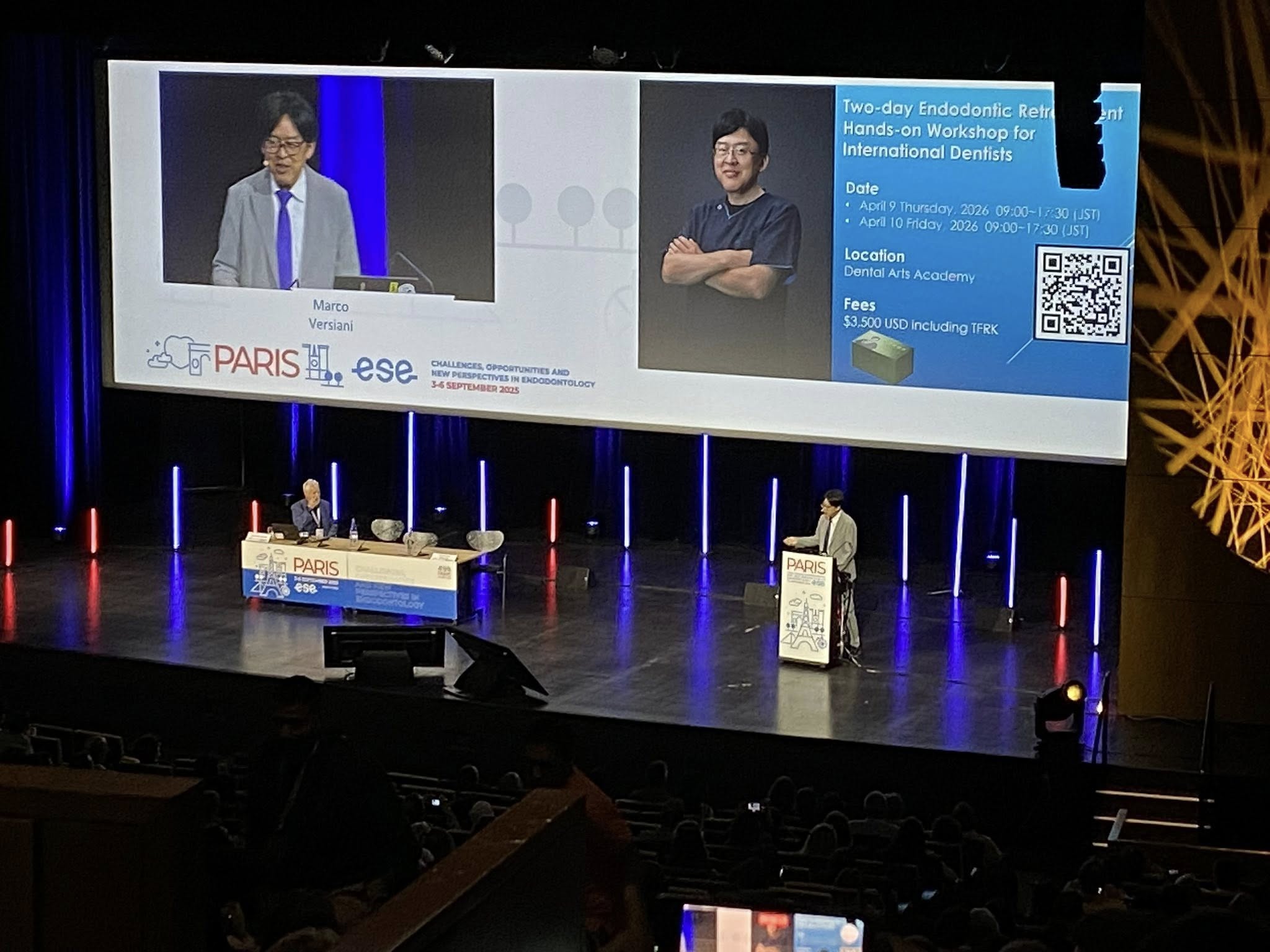 ヨーロッパ歯内療法学会(ESE) フランス・パリ 場所Hilton Paris la Defense. 公演日2025年09月 フランスのパリでヨーロッパ歯内療法学会(ESE)が開催されました。3000人以上が参加されたそうです。講演会とハンズオンコースをおこないました。講演会とハンズオンコースは満席でした。 講演風景 Zumax懇親会 懇親会の二次会 ハンズオンコース Woodpeckerパーティー Woodpeckerパーティー 講演会 PREVIOUS NEXT